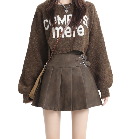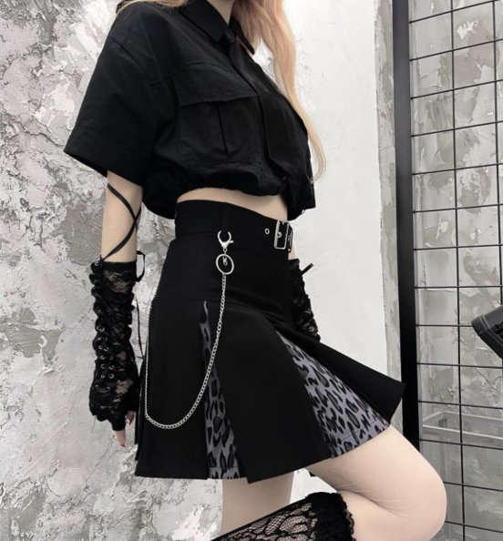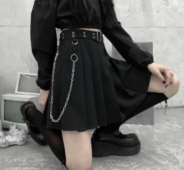 チェーンベルト付きプリーツミニスカート 韓国ファッション